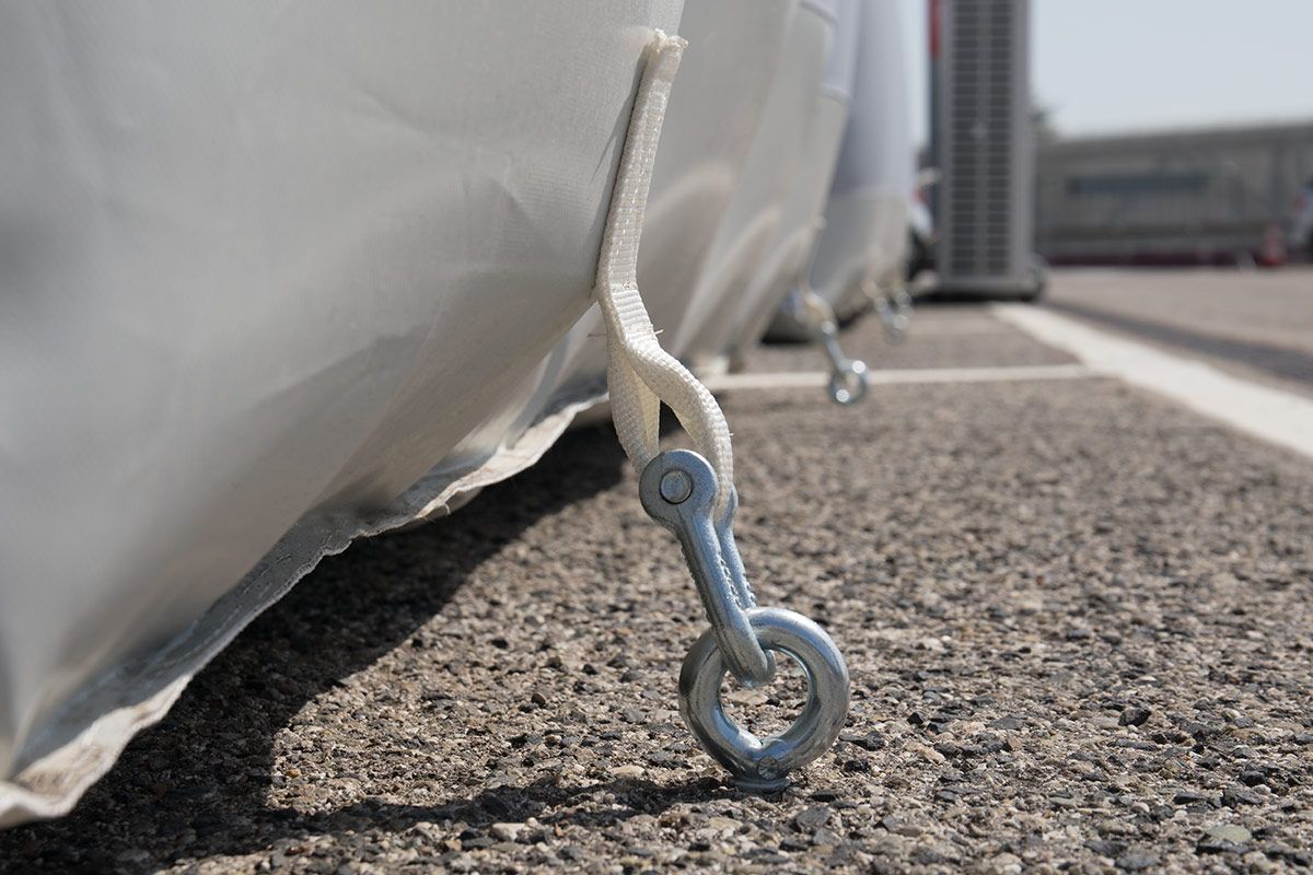 Era importante che la struttura fosse in grado di integrare in modo semplice e robusto 2 container-laboratori destinati alle analisi e 4 porte rigide con telaio – mediante speciali zip e profili in alluminio. Il tutto offrendo la massima rapidità di installazione, così da poter spostare l’area in base ai flussi di viaggiatori.