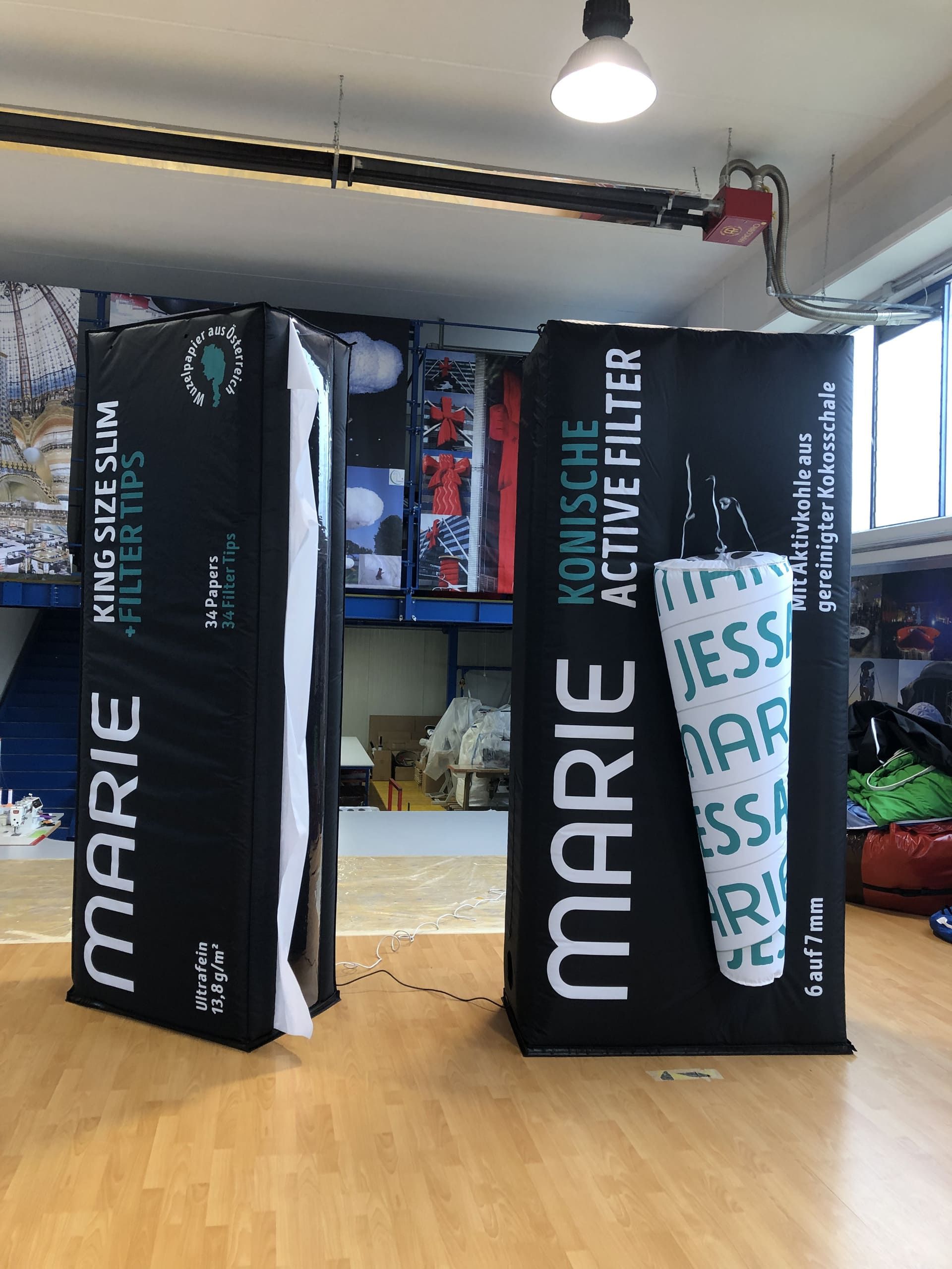 For Gizeh and Marie, we created a large-scale inflatable structure that faithfully reproduces their iconic cigarette paper and filter packs. The main elements—the paper and the filter—are highlighted by raised volumes, transforming the structure into an interactive installation capable of attracting and engaging the public.