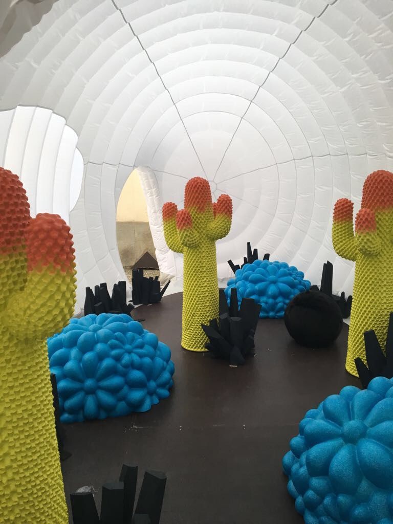 Pensata come una grande biosfera protettiva, la struttura accoglieva al suo interno Cactus e giganteschi fiori Bloom firmati Marcel Wanders. L’involucro gonfiabile, morbido e leggero, avvolgeva questo microcosmo come un guscio traslucido, un confine sottile tra realtà e immaginazione.