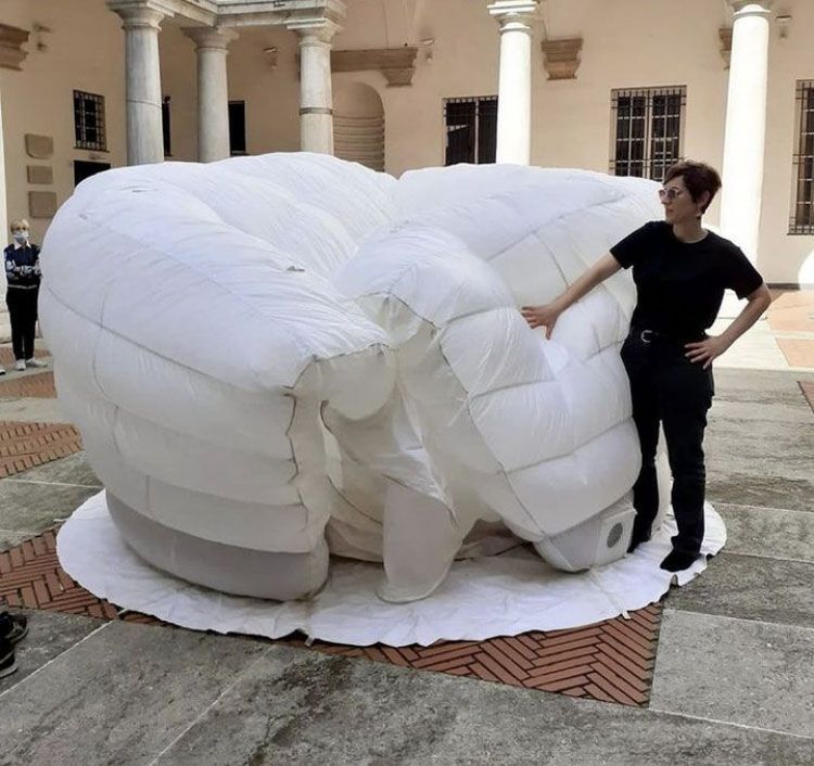 @eva_frapiccini è un'artista italiana per la quale abbiamo realizzato questa struttura gonfiabile su progetto dell'artista e del designer Michele Tavano, metaforica capsula del tempo e punto focale di una sua performance molto coinvolgente.